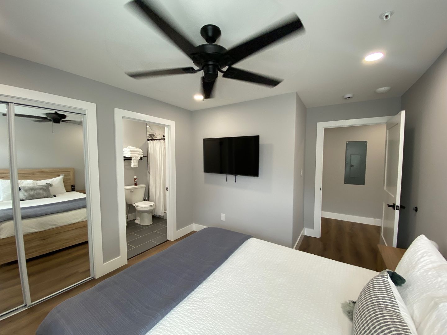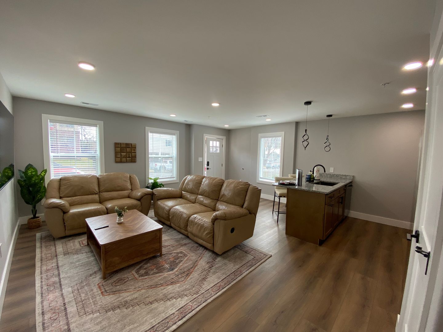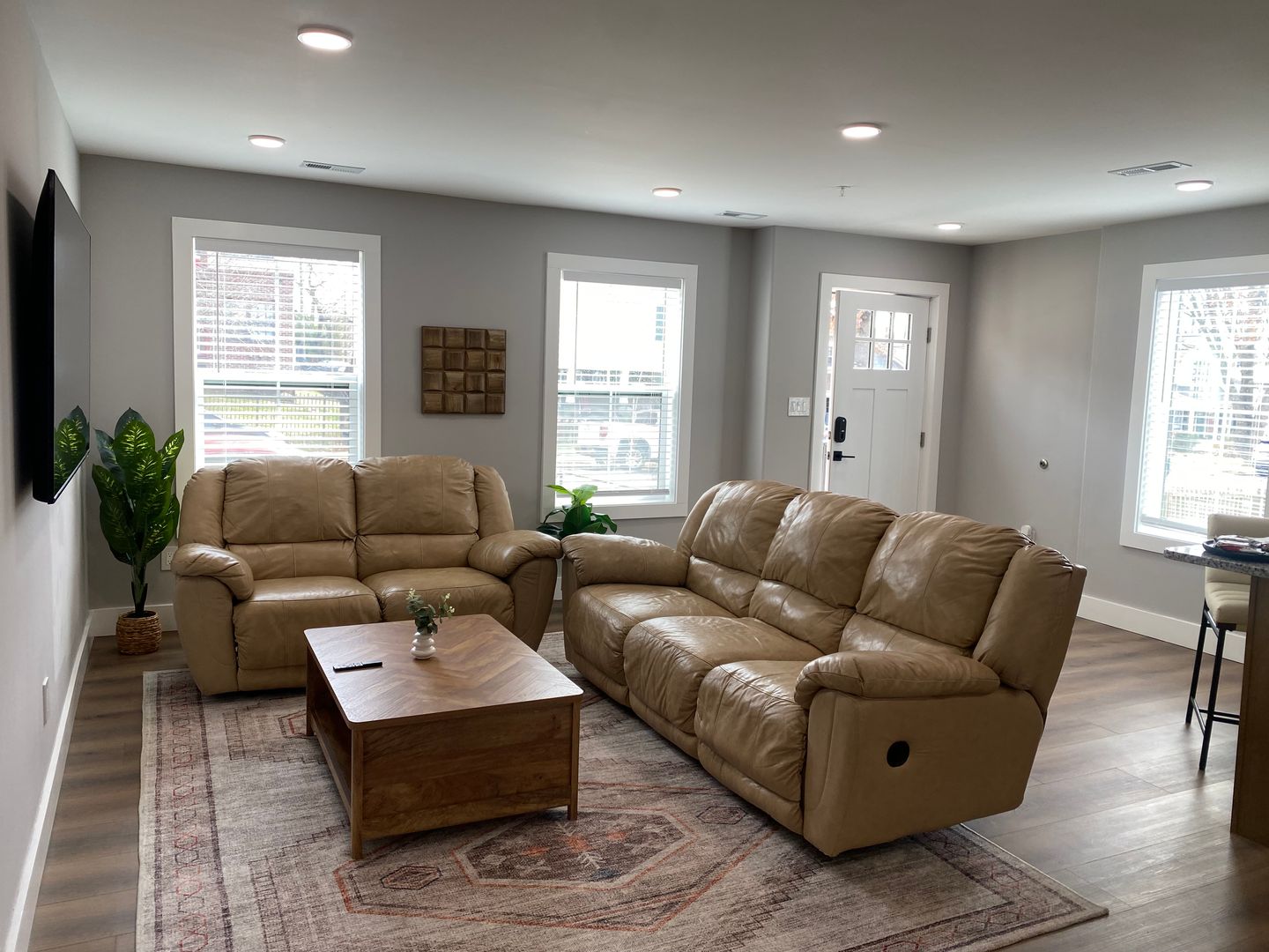 Each bedroom includes its own ensuite bathroom, providing a private retreat for every resident. The open-concept kitchen and living area features hardwood flooring, granite countertops, and custom tile showers, along with energy-efficient stainless steel appliances and sleek cabinetry designed for both function and style.