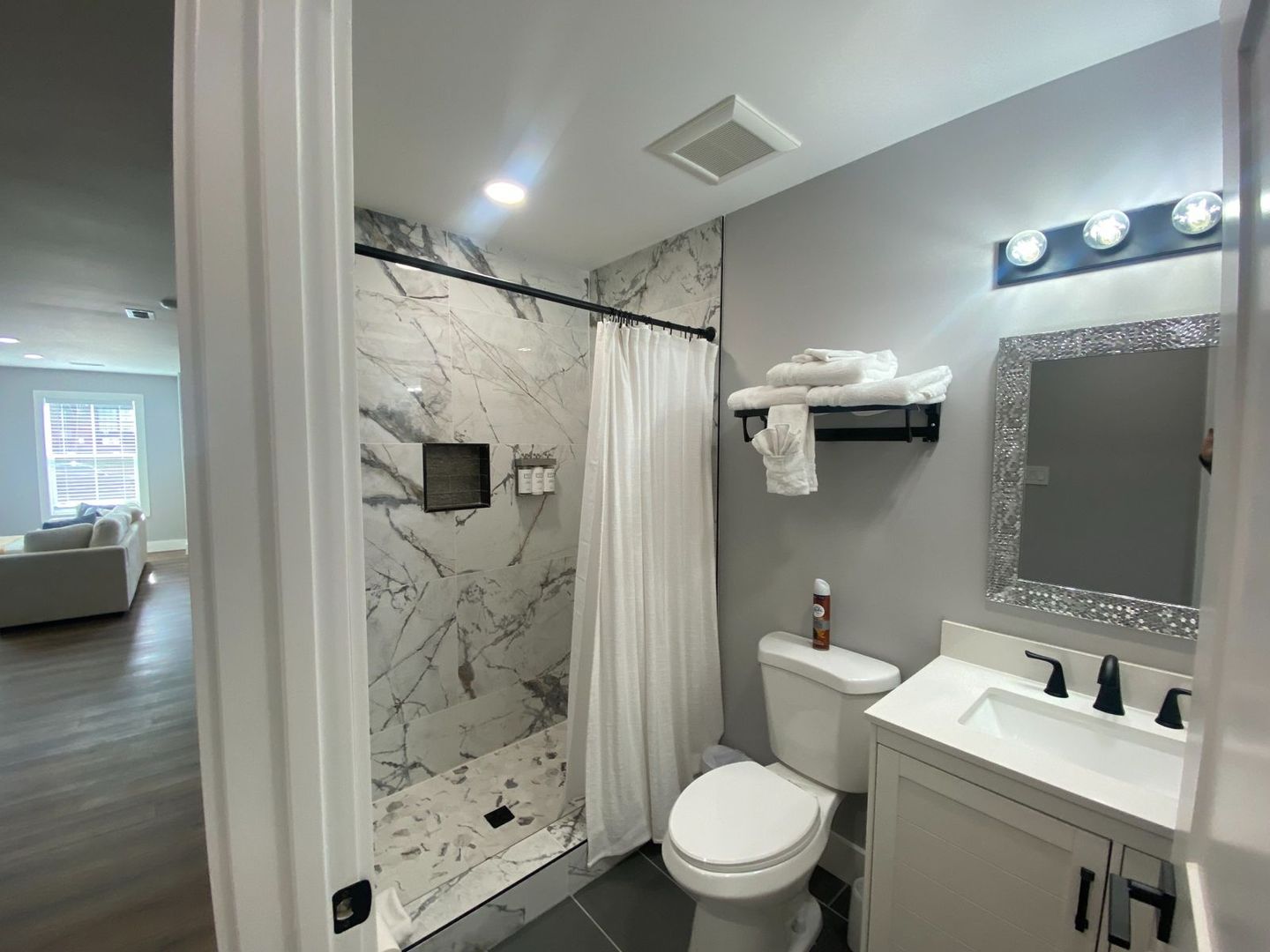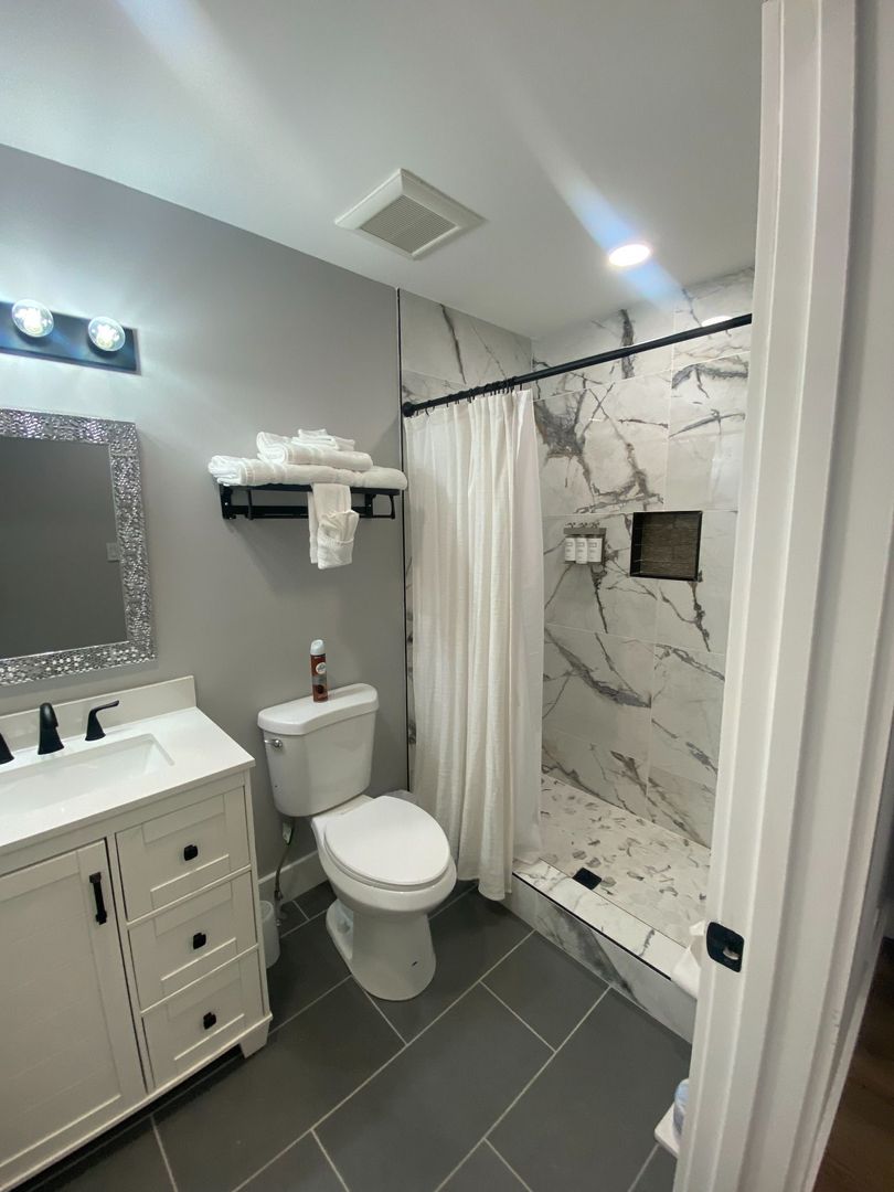 *Stylish custom marble showers in modern, private bathrooms